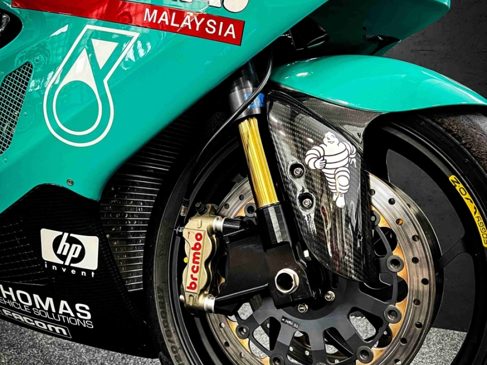 The package includes a spare engine and an original Troy Corser leather suit from the 2003 season.